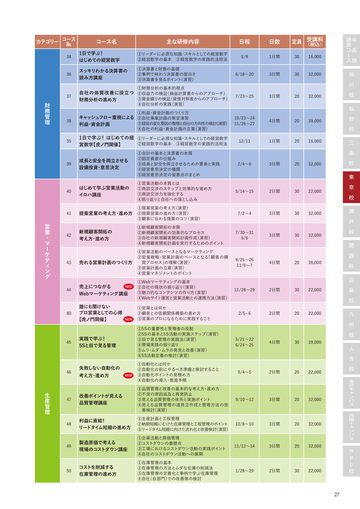対象に10ケ月全日制の経営後継者研修から、1〜3日間の短期研修まで、さまざまな期間・テーマの研修
