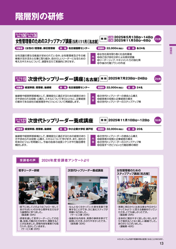 ております。また、階層別・分野別に、時代のニーズに合わせた多彩なテーマの研修を実施してお
