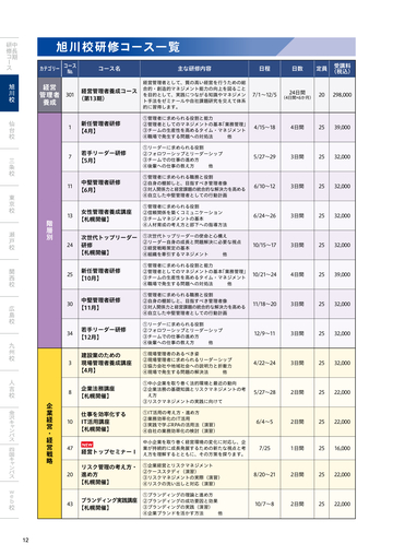 者などの方々を対象に10ケ月全日制の経営後継者研修から、1〜3日間の短期研修まで、様々な期間・