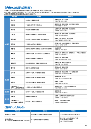 支援施策の情報。各種支援機関からの補助金・