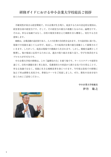 - 研修ガイドにおける中小企業大学校総長ご挨拶