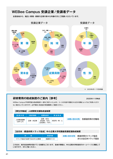 受講企業/受講者データ・研修費用の助成制度のご案内��P.41